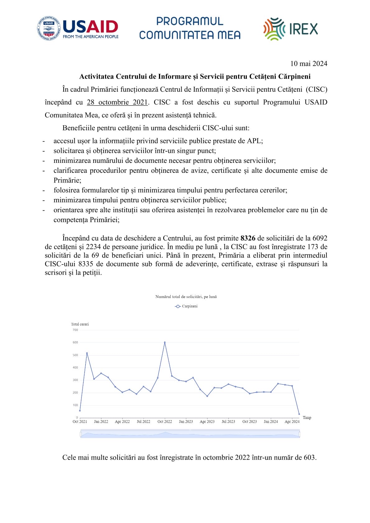 Activitatea Centrului de Informare și Servicii pentru Cetățeni Cărpineni