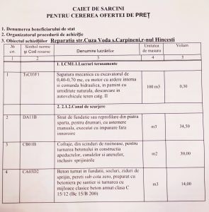 Anunț privind achiziția lucrărilor de reparație a străzii Cuza Vodă din satul Cărpineni.