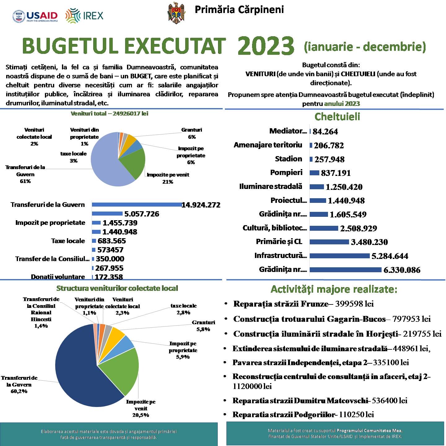 Prima Buget Bugetul executat al Primăriei Cărpineni pentru anul 2023BugetBugetul executat al Primăriei Cărpineni pentru anul 20234 aprilie 2024101DISTRIBUIȚI Facebook Twitter
