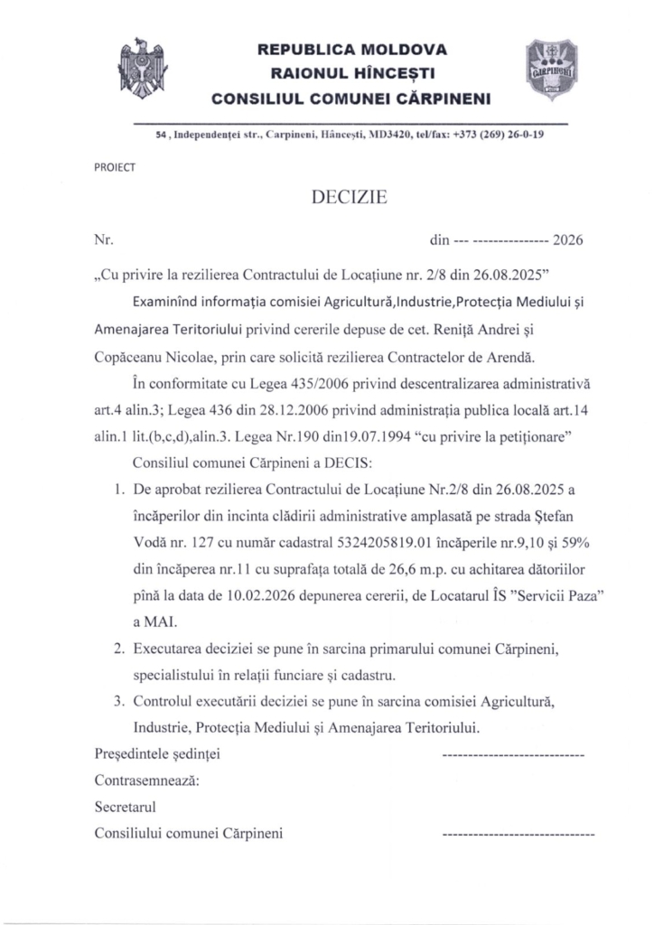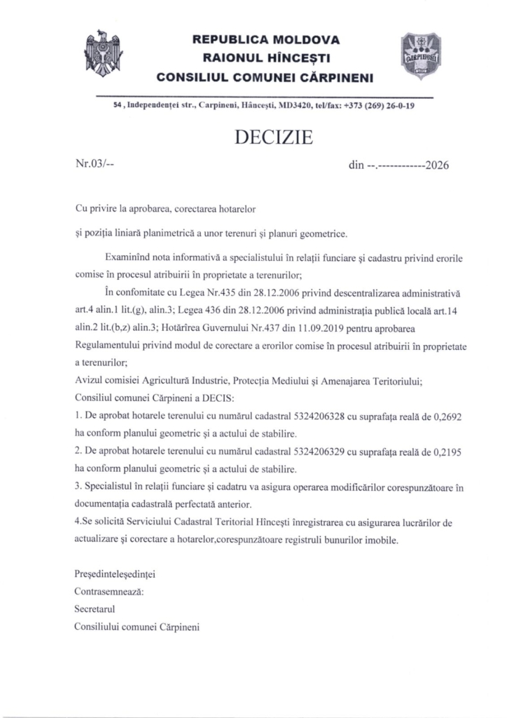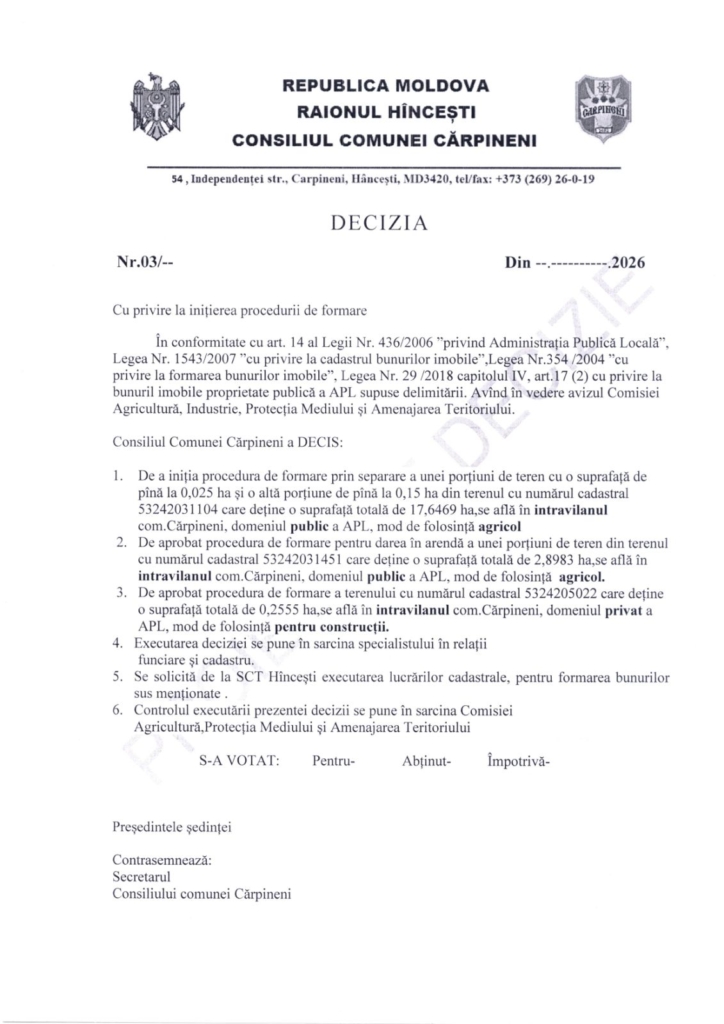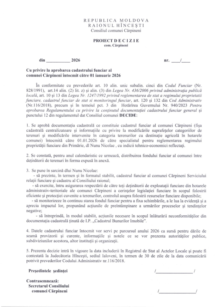 Prima Toate Darea de seamă cu privire la aprobarea cadastrului funciar al com. Cărpineni...ToateDarea de seamă cu privire la aprobarea cadastrului funciar al com. Cărpineni întocmit către 1 ianuarie 2026.16 februarie 20266DISTRIBUIȚI Facebook Twitter