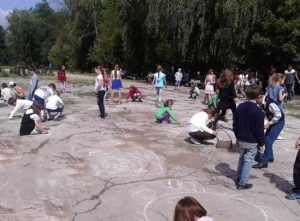 De 1 iunie- Ziua Internațională a Copilului- elevii claselor primare din Liceul Teoretic „Ștefan Holban”, comuna Cărpineni, au desenat pe asfalt copilăria