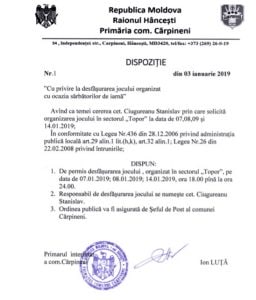 Dispoziția Nr. 1 din 3 ianuarie 2019 cu privire la desfășurarea jocului organizat cu ocazia sărbătorilor de iarnă