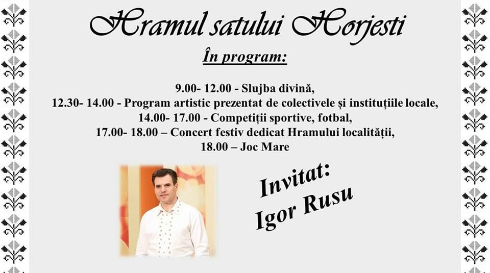 Duminică, 27 mai 2018, satul Horjești din comuna Cărpineni va sărbători Hramul localității. Vă așteptăm!