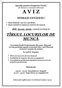 Evenimentul va avea loc joi, 23 mai 2019 în incinta Școlii Profesionale din mun. Hîncești, cu începere de la ora 9.00. La tîrg participă agenţi economici din r-nul Hînceşti cu locuri vacante de muncă.